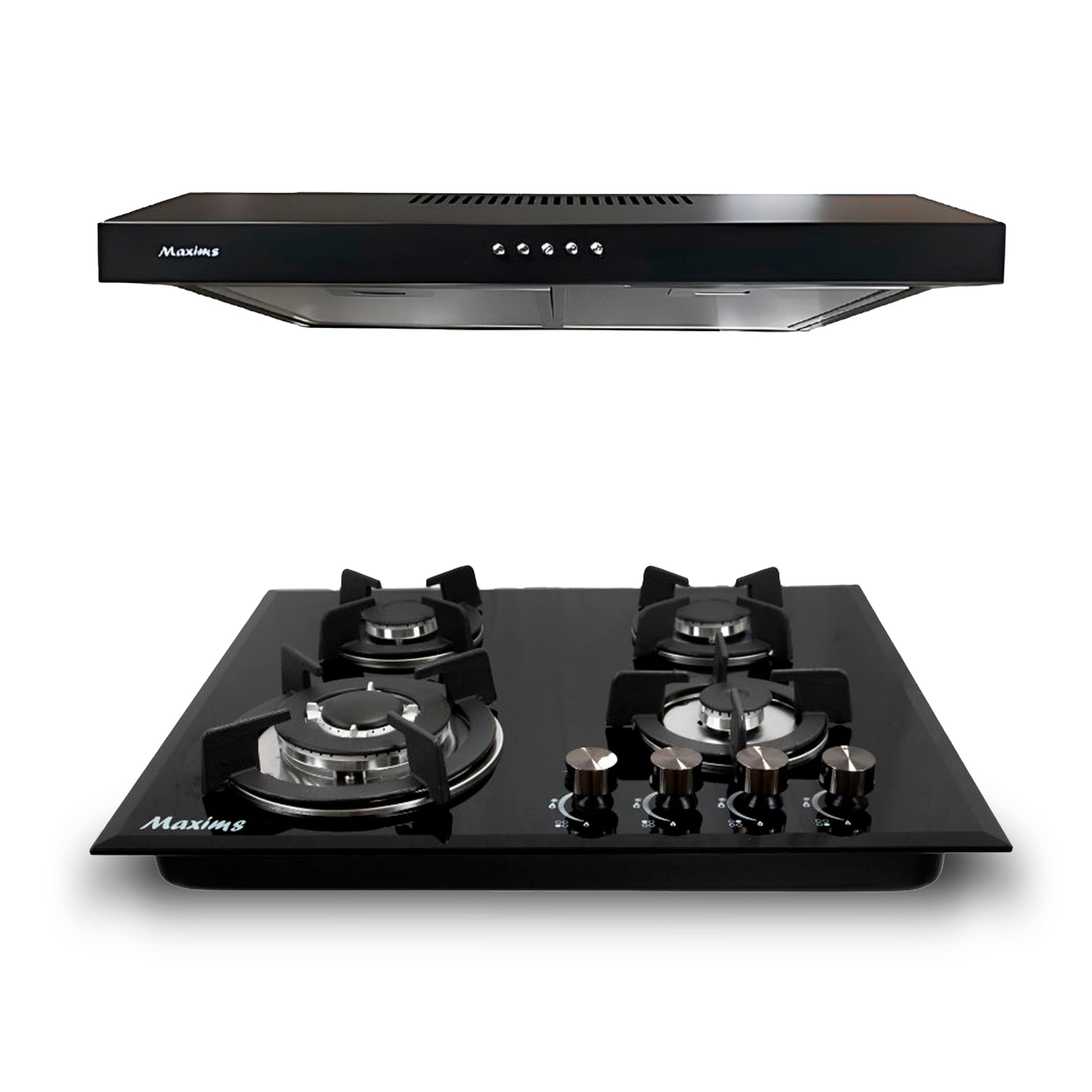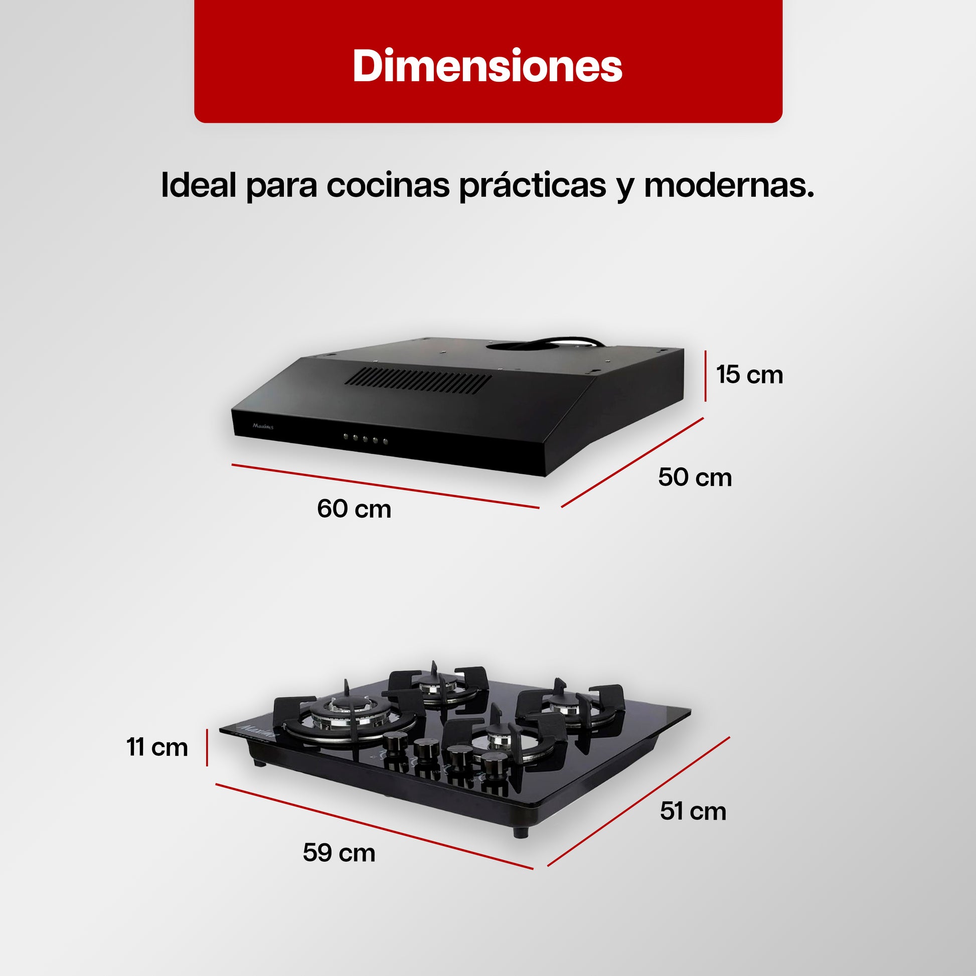 Combo Parrilla a Gas 4 Quemadores de Cristal Negro + Campana Extractora 60 cm