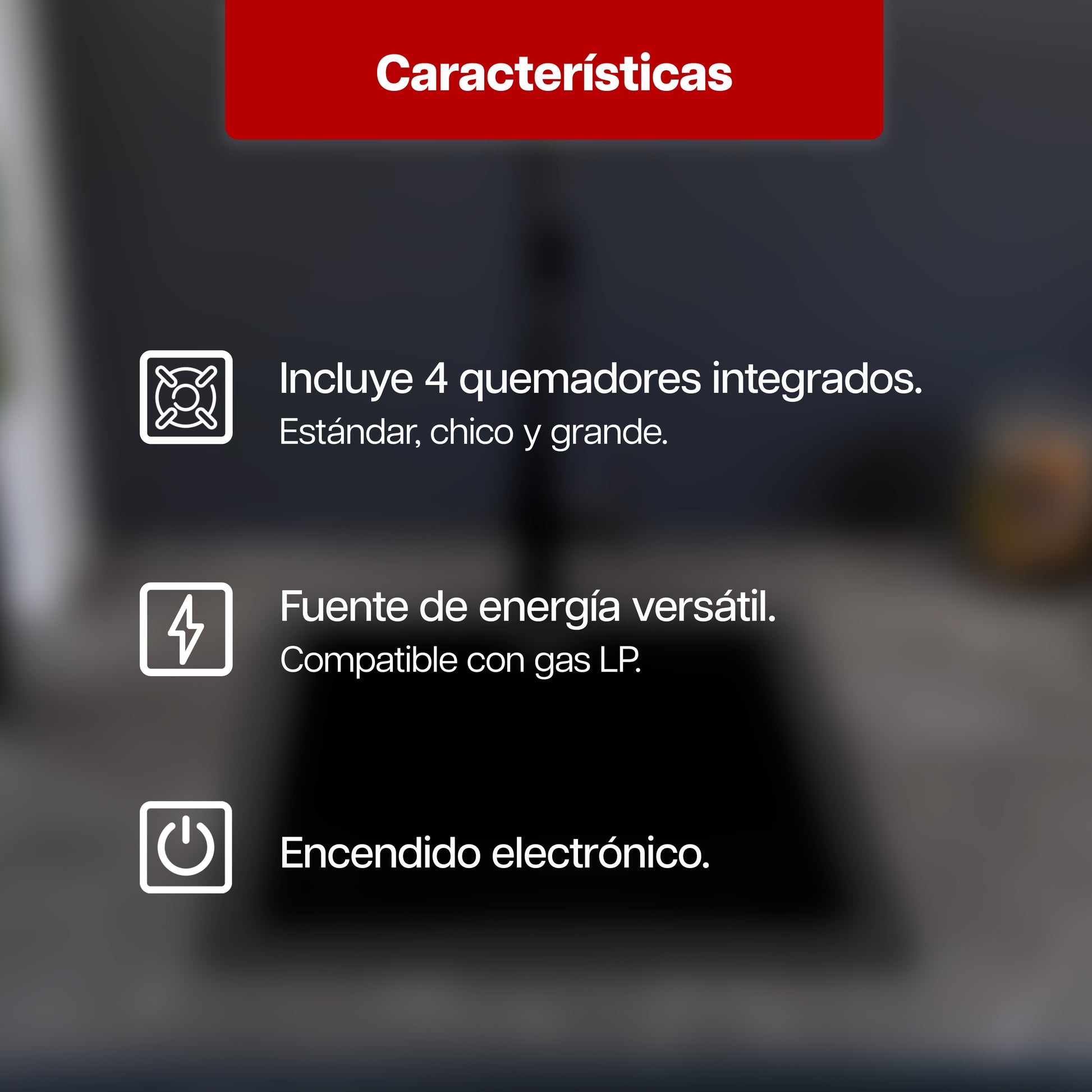 - Gas: Compatible con Gas LP (Gas Licuado de Petróleo).